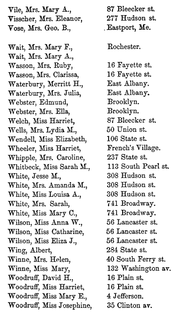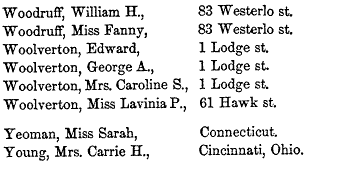 Wilson, Wing, Winne, Woodruff, Woolverton, Yeoman, and Young.